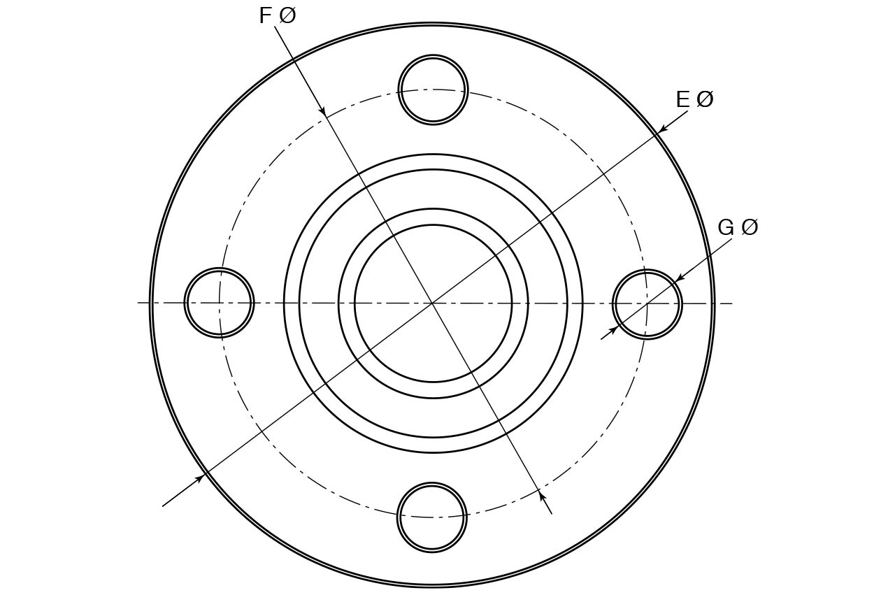 | Nennweite | Größe | E Ø | F Ø | Gxn Ø |
